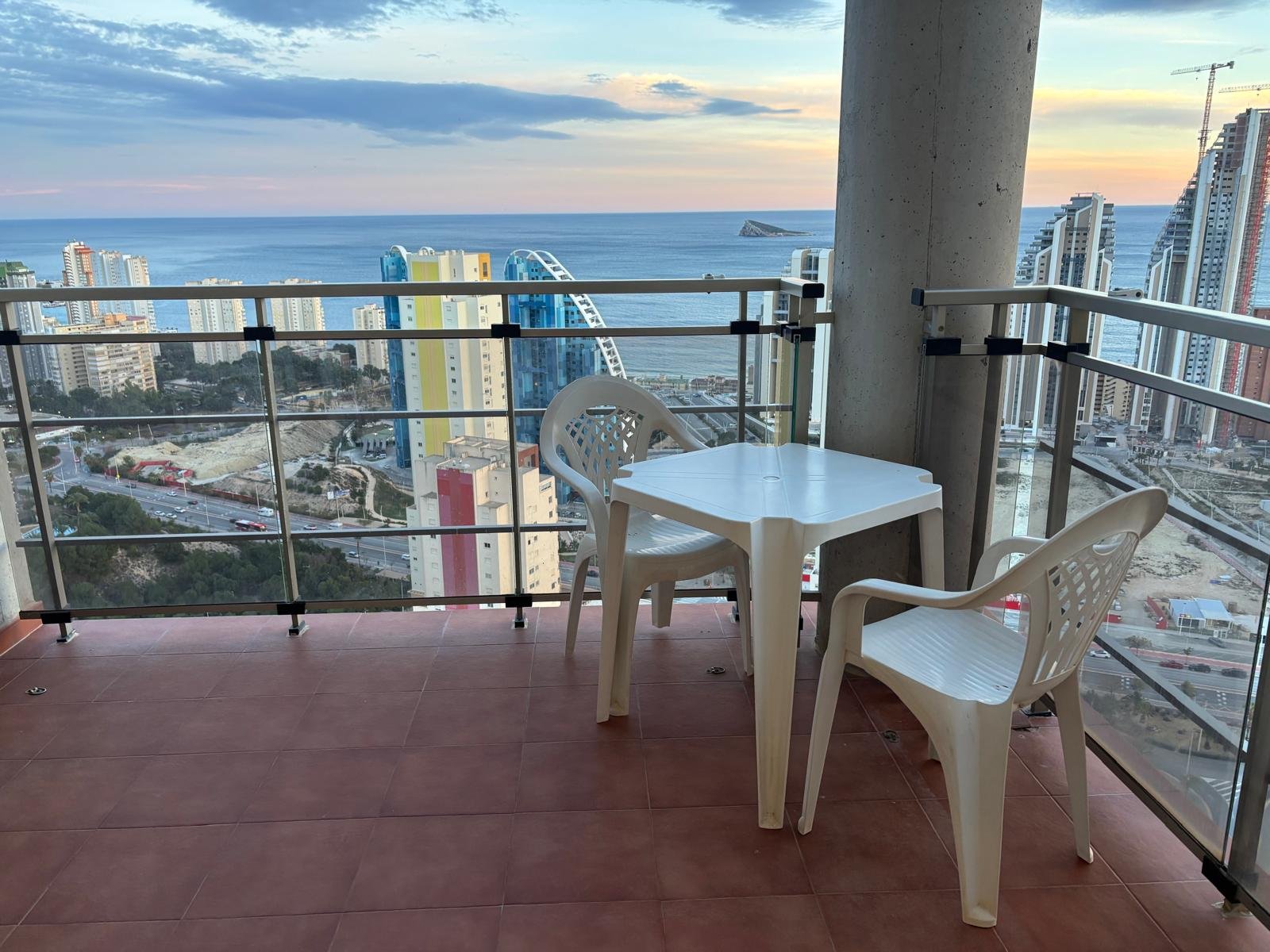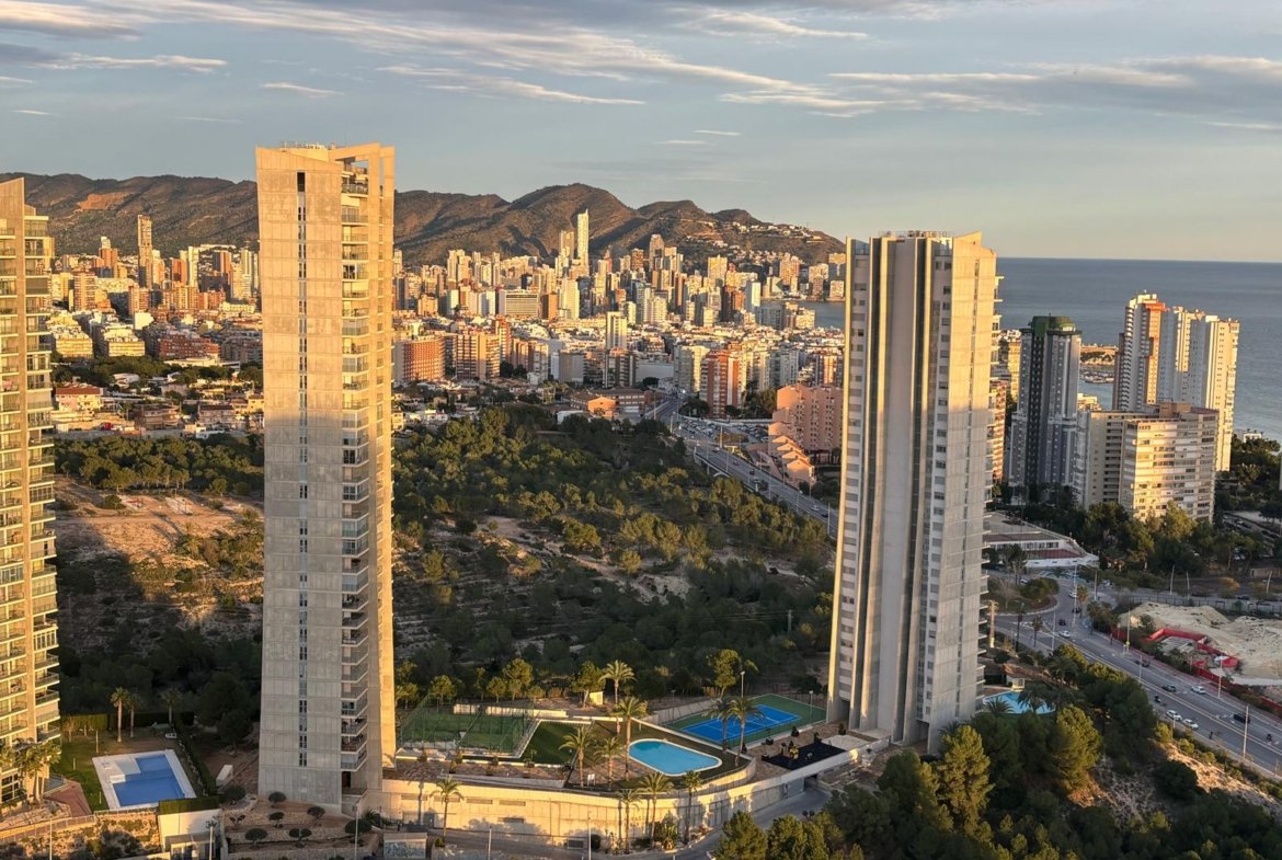 Vă prezentăm un apartament impresionant situat la etajul 31 al unui imobil de prestigiu din zona Via Parque, Poniente. Datorită înălțimii sale privilegiate, proprietatea oferă vederi panoramice spectaculoase asupra întregului golf Benidorm, transformând fiecare răsărit și apus într-o experiență unică.