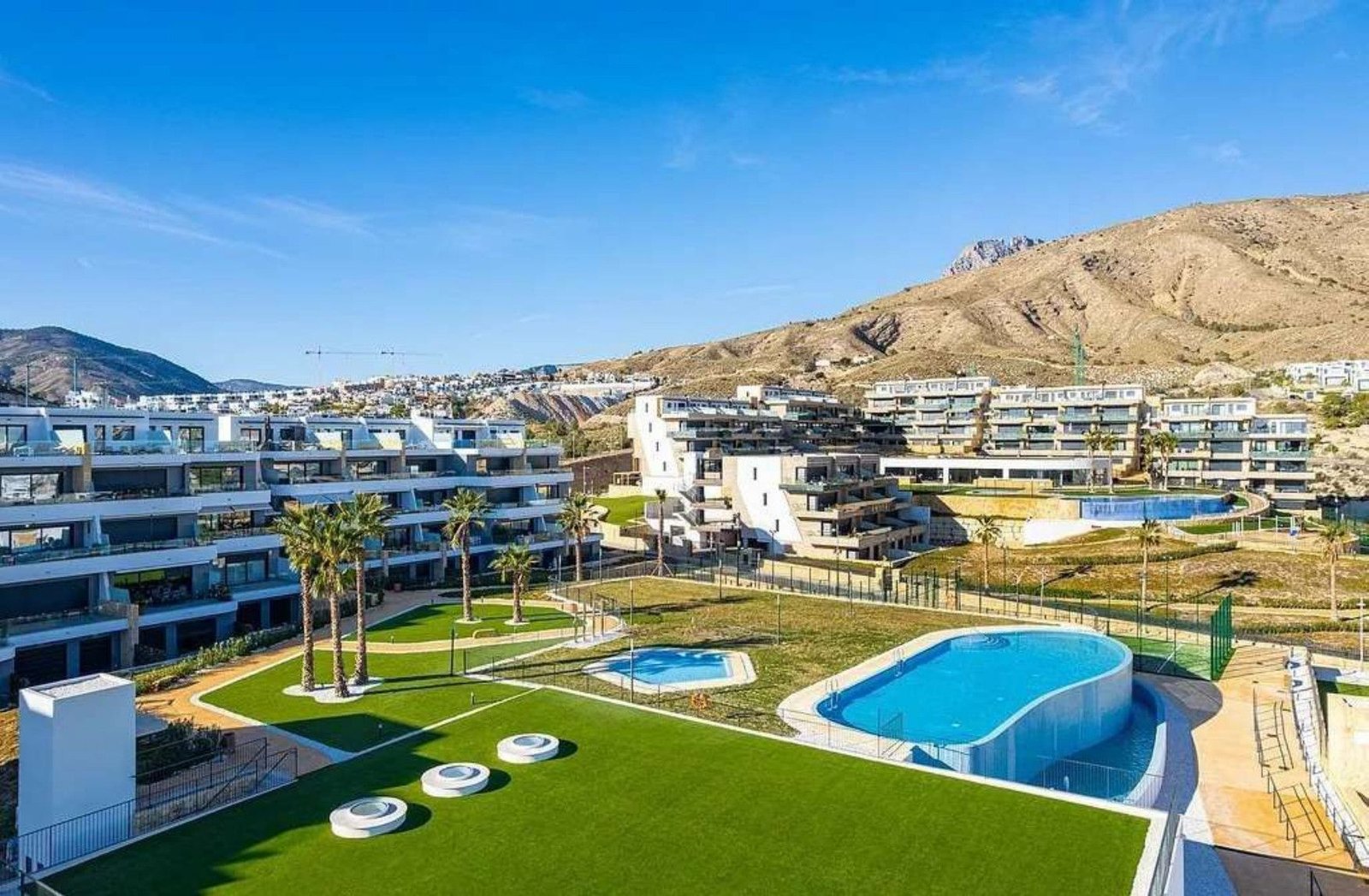 Vă prezentăm un duplex modern și unic, situat într-un complex rezidențial de lux din zona Terra Marina, la marginea orașului Benidorm. Această proprietate se distinge prin conceptul său inovator: dispune de două intrări separate și este configurată ca două apartamente independente, fiecare având două dormitoare și două băi. Această distribuție strategică oferă avantaje enorme pentru închiriere, permițând generarea de venituri din două surse simultan, fiind o investiție imobiliară de top pe Costa Blanca.