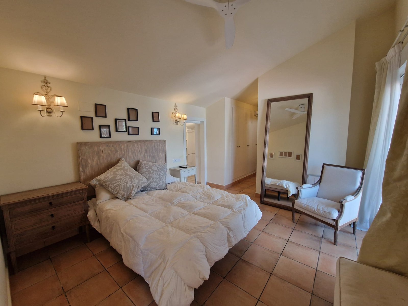 Piesa de rezistență se află la nivelul superior: o suită matrimonială spectaculoasă, cu baie privată, spații de depozitare generoase și acces direct la o terasă solarium impresionantă, amenajată în stil mediteraneean. Proprietatea este dotată cu sisteme de climatizare în toate încăperile, radiatoare electrice, jaluzele electrice și geamuri cu geam dublu. Complexul oferă acces la piscină și grădini comunitare, asigurând un refugiu de lux în faimoasa zonă Mascarat.