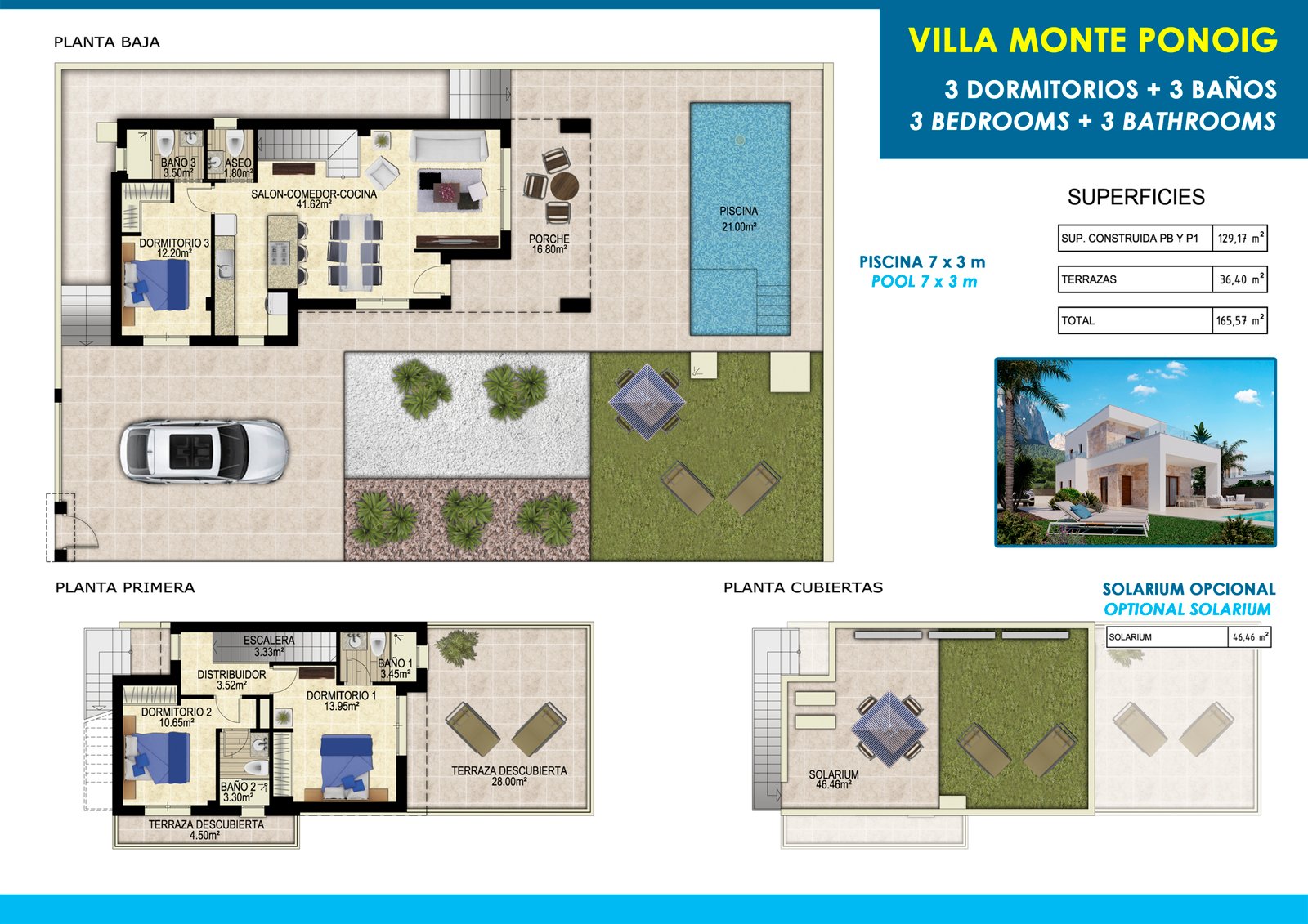 În complexul Don Benito Top Villa, locația este privilegiată, la doar 20 de minute de plajele din Benidorm și Altea. Fiecare locuință dispune de o parcelă privată independentă de 350 mp, care include o zonă de parcare, o grădină mediteraneeană complet amenajată și o piscină privată de 7×3 metri cu zonă de plajă. Vilele se bucură de un design modern și o distribuție gândită pentru confort maxim.